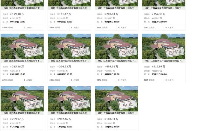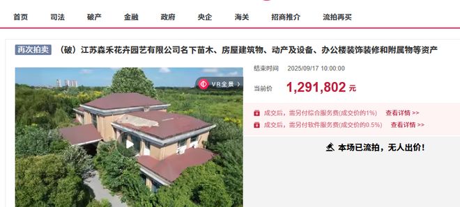 9月17日,在阿里拍卖上,江苏泰州市迎来了一宗跟破产公司有关的拍卖,此次拍卖的是江苏森禾花卉园艺有限公司名下苗木、房屋建筑物、动产及设备、办公楼装饰装修和附属物等资产,资料显示江苏森禾花卉园艺有限公司成立于2007年,注册资本高达5000万元,是全国知名的房地产开发商森禾集团旗下的一家园林绿化工程公司,现在已经破产了。